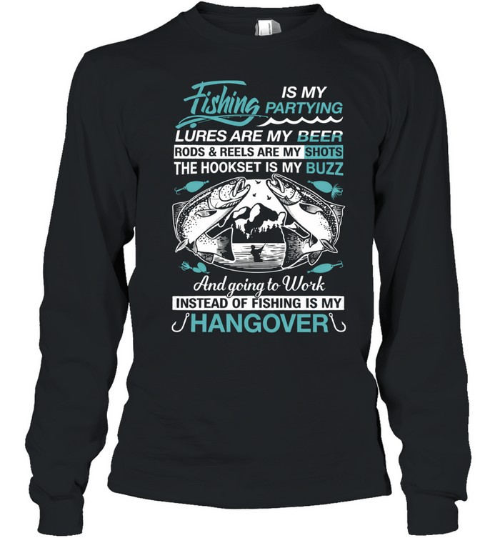 Fishing Is My Partying Lures Are My Beer Rods Reels Are My Shots Unisex T-Shirt is a fun and creative design for people who would rather spend their time fishing than partying. The humorous message shows that for true fishing fans, lures are the “beer,” rods and reels are the “shots,” and the lake or river is the best place to celebrate. It perfectly captures the relaxed and joyful lifestyle of anglers who enjoy the thrill of casting a line and waiting for the next big catch.