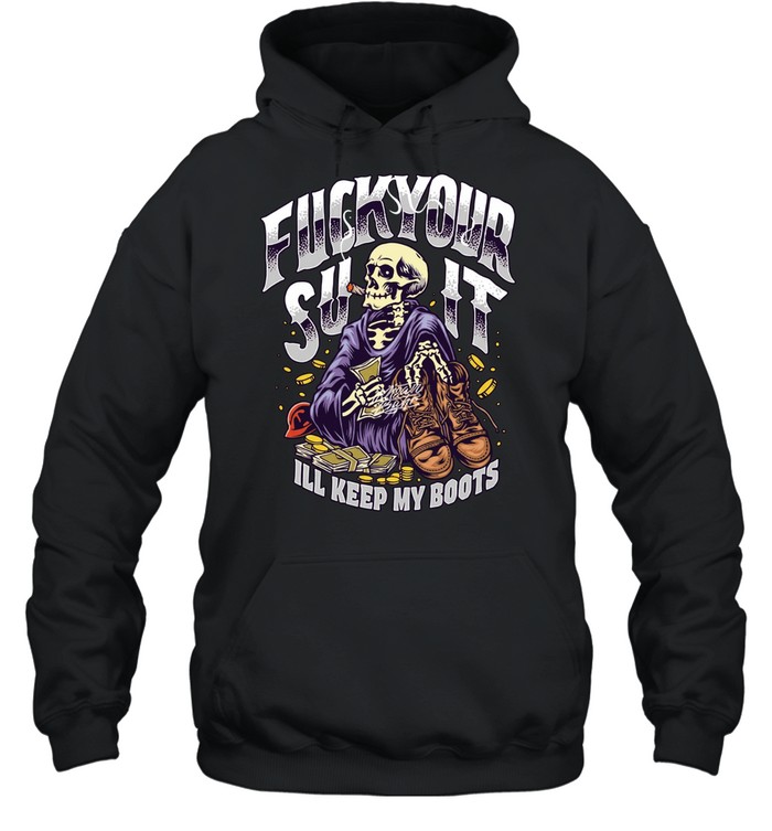Wearing the **Fuck your suit I’ll keep my boots smoking skeleton Unisex T-Shirt** is not just about fashion; it’s about embracing your unique identity and showcasing your personality to the world. Picture yourself donning this t-shirt at a music festival, where the beat of the drums echoes your spirit, or at a laid-back barbecue with friends, sparking laughter and conversations around a shared love for all things quirky. The shirt is more than just an article of clothing; it’s an invitation to connect with others who appreciate bold choices and humor. So, why not take that leap? Slip into this striking tee and let it be a conversation starter, a way to wear your heart on your sleeve—literally! Feel the excitement of stepping out in a garment that not only looks fantastic but also makes you feel empowered and unapologetically you. Go ahead, embrace the vibe, and let the world know that you’re here to have fun while keeping it real!