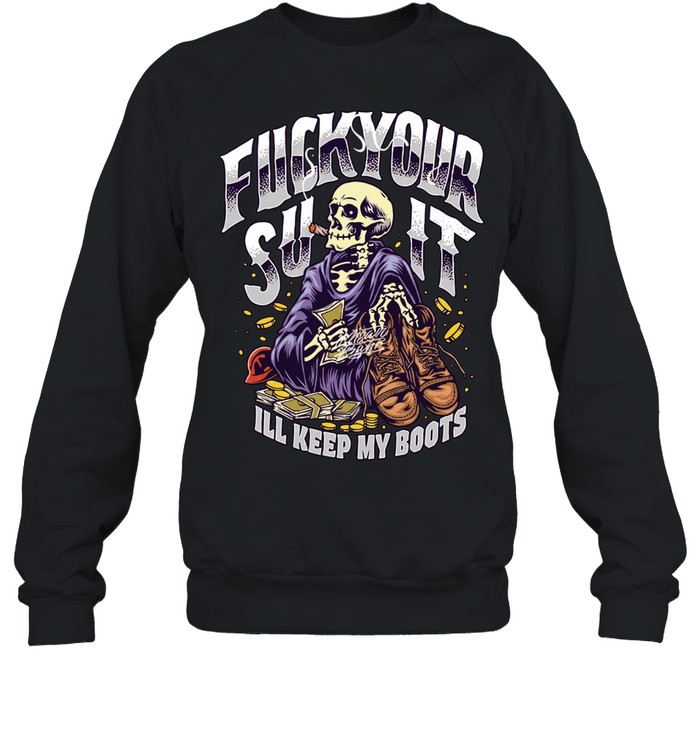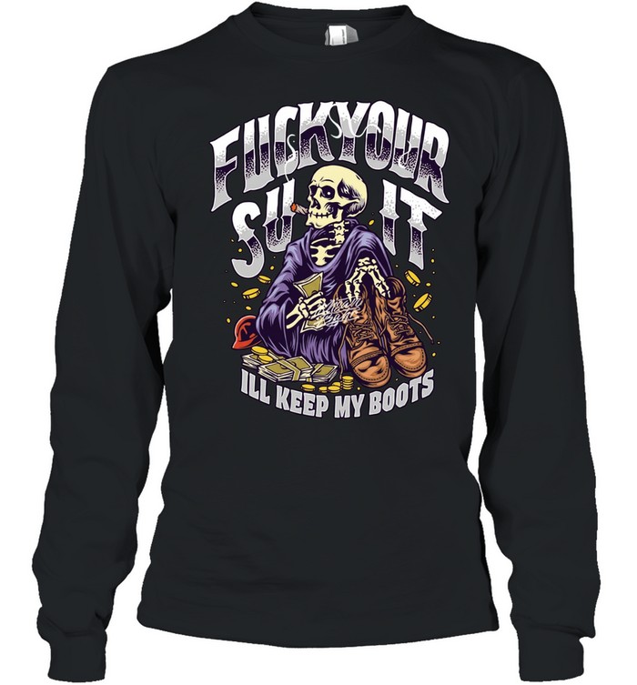 Fuck Your Suit I’ll Keep My Boots Smoking Skeleton Unisex T-Shirt is a bold and rebellious design made for those who embrace independence, raw attitude, and unapologetic self-expression. This Unisex T-Shirt turns a gritty statement into a powerful graphic tee, perfect for individuals who prefer real grit over polished appearances and aren’t afraid to show it.