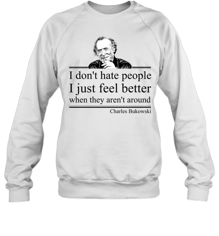 The I Don’t Hate People I Just Feel Better When They Aren’t Around Charles Bukowski Unisex T-Shirt is a bold graphic tee inspired by the raw and honest writing style of Charles Bukowski. Known for his gritty realism and unapologetic perspective on life, Bukowski became one of the most influential voices in modern underground literature. His quotes often reflect themes of solitude, independence, and the complicated nature of human relationships.