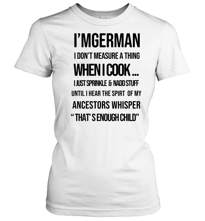 For many fans of cooking humor and German culture, wearing the I’m German I Don’t Measure A Thing When I Cook I Just Sprinkle And Add Stuff Unisex T-Shirt is a confident way to show personality in the kitchen. The message highlights the idea that cooking can be about instinct, creativity, and enjoying the process rather than following exact measurements.