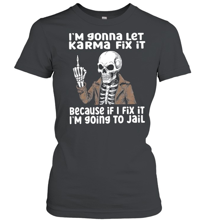 In a world filled with everyday challenges, sometimes the universe aligns perfectly to remind us to take it easy and let things unfold as they should. Enter the **I’m gonna let Karma fix it because if I fix it I’m going to jail Unisex T-Shirt**—a design that embodies not only a clever phrase but also a lifestyle choice. This shirt is not just an article of clothing; it’s a statement of empowerment and humor woven into soft, breathable fabric that hugs your body just right. Imagine the vibrant graphics splashed across the front—bold letters that catch the eye and a whimsical style that sparks conversations. Whether you’re sitting with friends at a casual gathering or strolling through the park, this shirt serves as a reminder to embrace life’s unpredictability and trust in the process, all while showcasing your unique personality. Each time you wear it, you’ll feel a surge of pride, knowing that you’re representing a mindset that many resonate with—a humorous take on leaving the heavy lifting to karma.