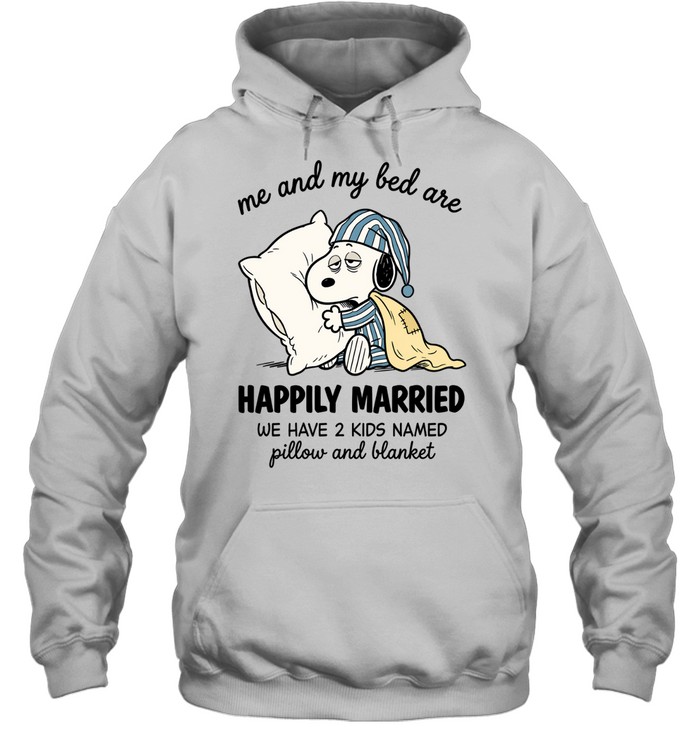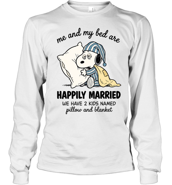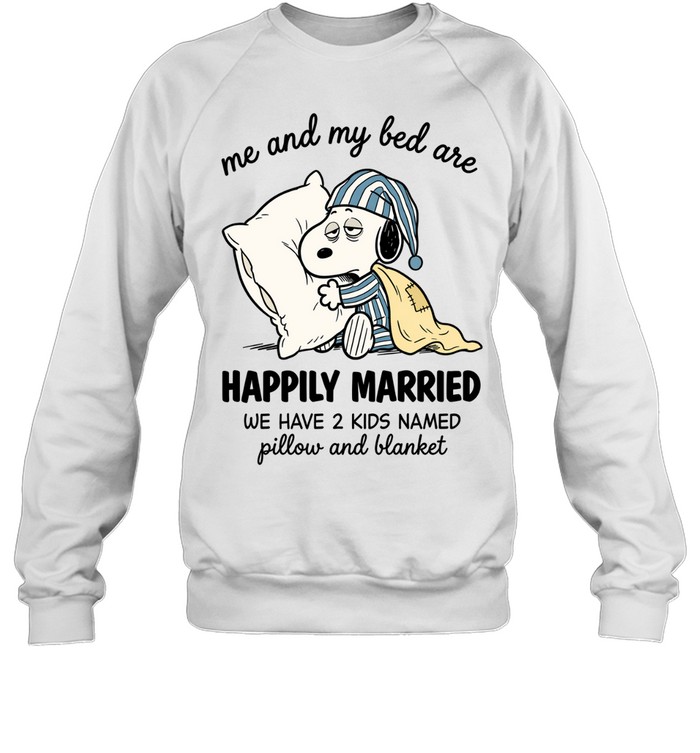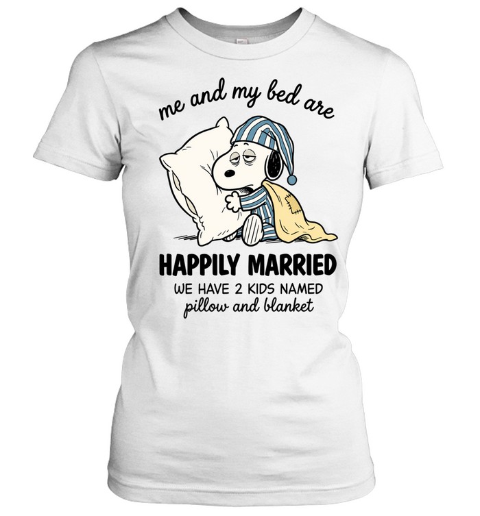 Me And My Bed Are Snoopy Happily Married We Have 2 Kids Named Pillow And Blanket Unisex T-Shirt