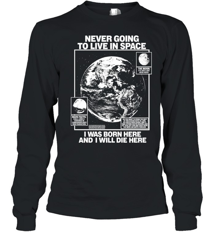 Never Going To Live In Space I Was Born Here And I Will Die Here Unisex T-Shirt is a witty and thought-provoking design for those who enjoy dry humor, grounded perspective, and playful commentary on futuristic trends. This Unisex T-Shirt turns a clever statement into a memorable graphic tee, perfect for people who appreciate sarcastic humor and enjoy expressing personality through bold, relatable fashion.