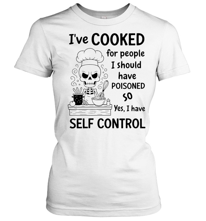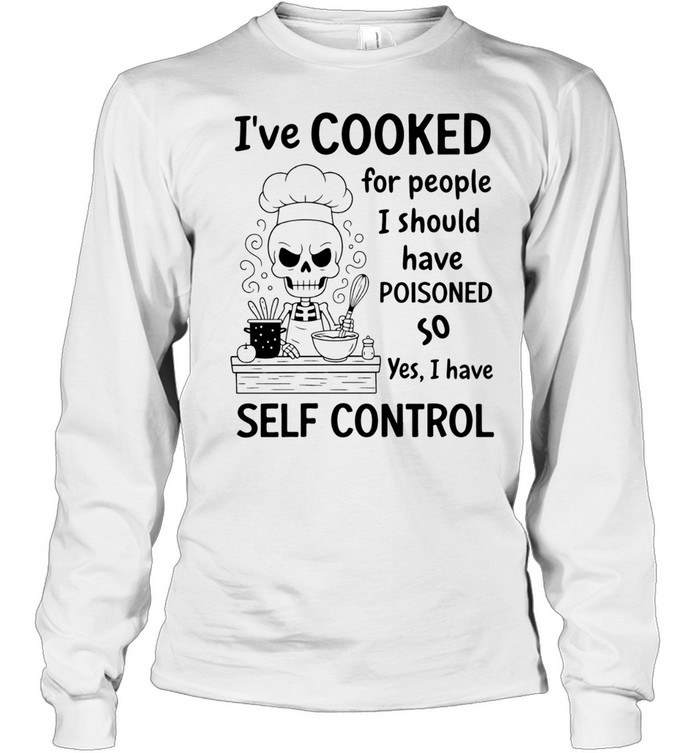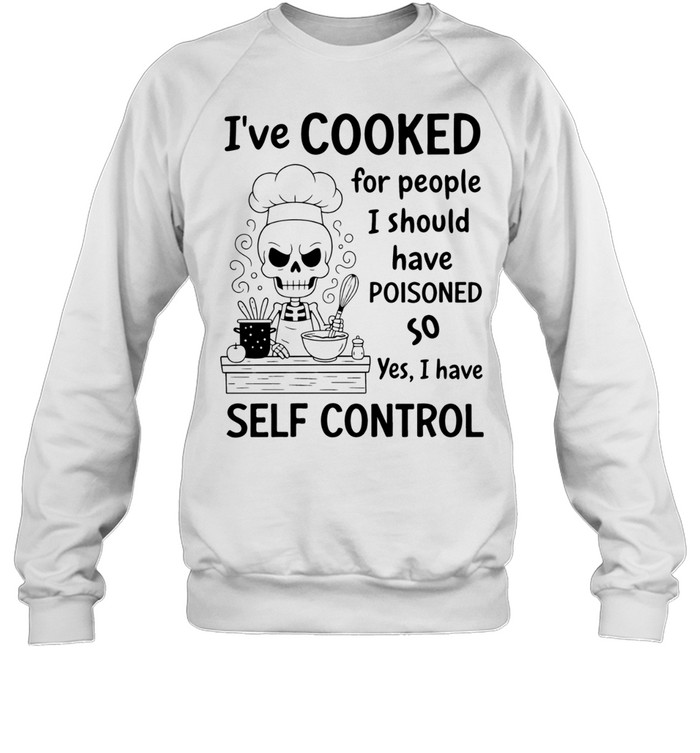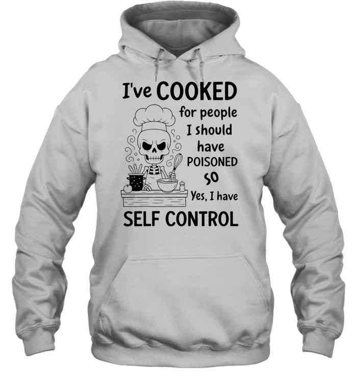 Skeleton Chef Ive Cooked For People I Should Have Poisoned Too So Yes I Have Self Control Unisex T-Shirt is a darkly humorous design made for chefs, kitchen pros, and food lovers who appreciate sarcastic wit with a playful edge. This Unisex T-Shirt transforms bold culinary humor into a standout graphic tee, perfect for anyone who thrives in busy kitchens and enjoys expressing personality through sharp, funny statements.